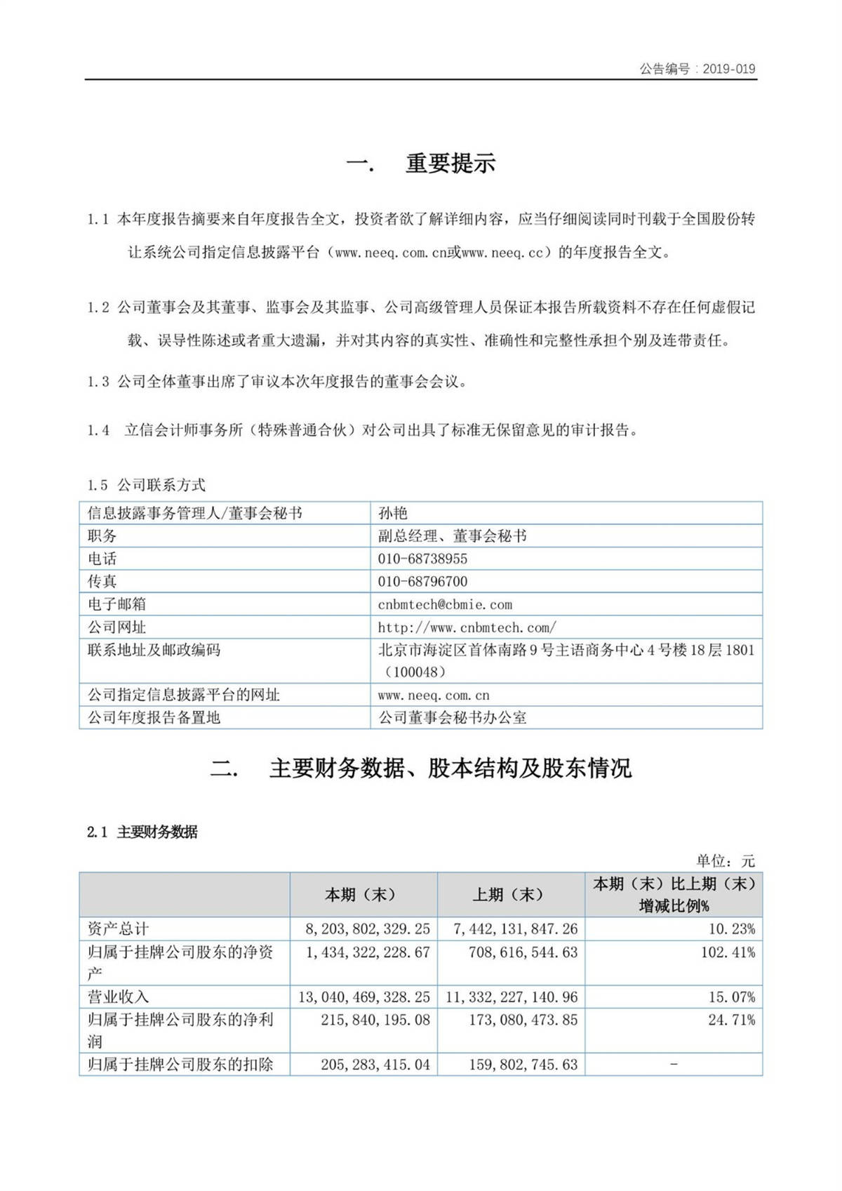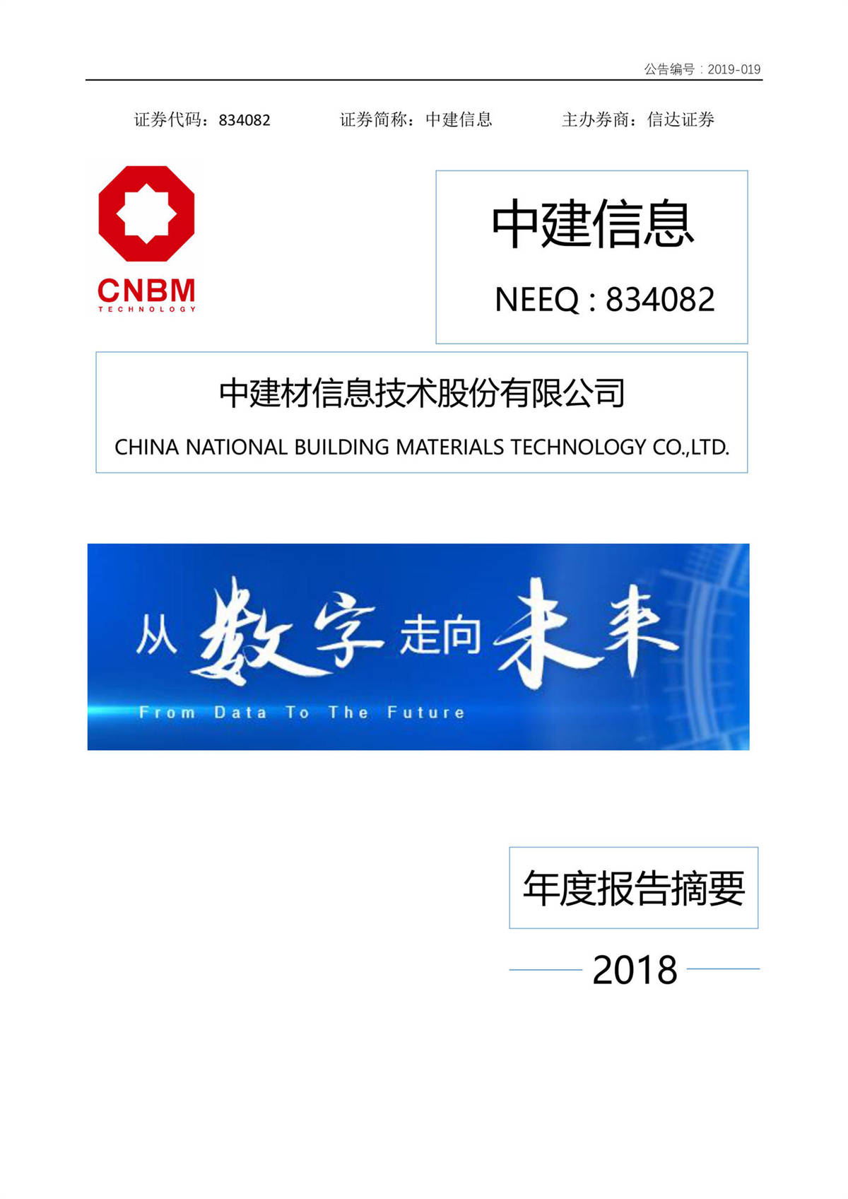 中建信息2018年年度報告摘要